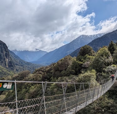 Eventually we came to the final and longest swing bridge. the wind was tearing through the valley and a rush of adrenaline hit me as I crossed the bridge. With absolutely phenomenal views on both sides it gave me a new lease of life and after 20 more minutes, we had made it to the hut.